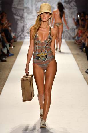 A grife colombiana usou na coleção estampas criativas, estampas florais, e colorido. Já a Beach Bunny utiliza suspensórios e cores vivas, além da combinação clássica branco & preto,