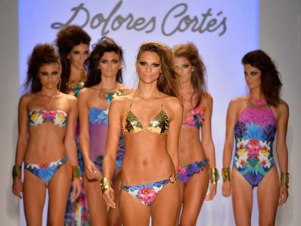 A grife Dolores Cortés apostou em estampas bem florais, e dourados que apareceram tanto nos acessórios e nos biquínis e maiôs.